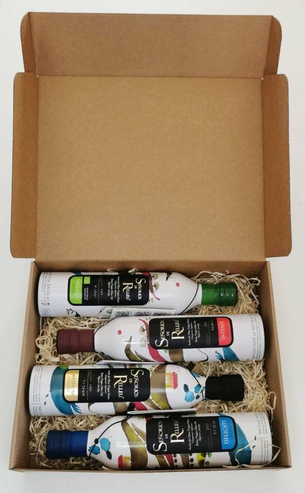 ❤️ VALENTIJN BOX ❤️ SET 4 x 500 ML BOTTLES: DELICATE + MEDIUM + INTENSE + ORGANIC COUPAGE EXTRA VIRGIN OLIVE OIL + GRATIS SPAANSE KRUIDENMIX
