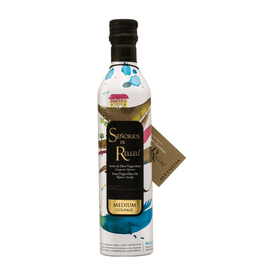 The Extra Virgin Olive Oil Medium Coupage 500 ml. Señoríos de Relleu®, is a coupage of extra virgin olive oils of five native and arbequina variety, with a medium fruity, a light bitter and a spicy upper middle, wich provide strong.